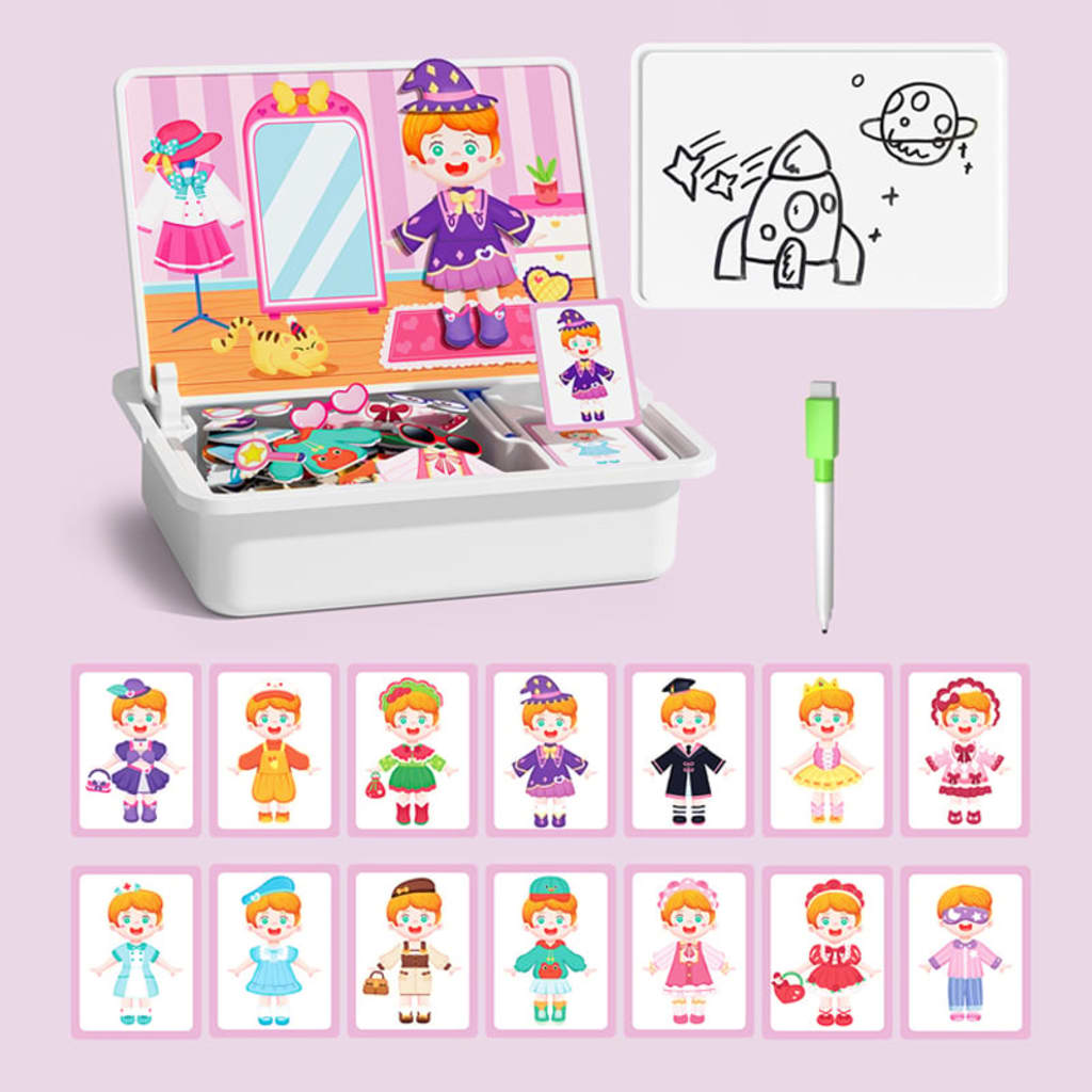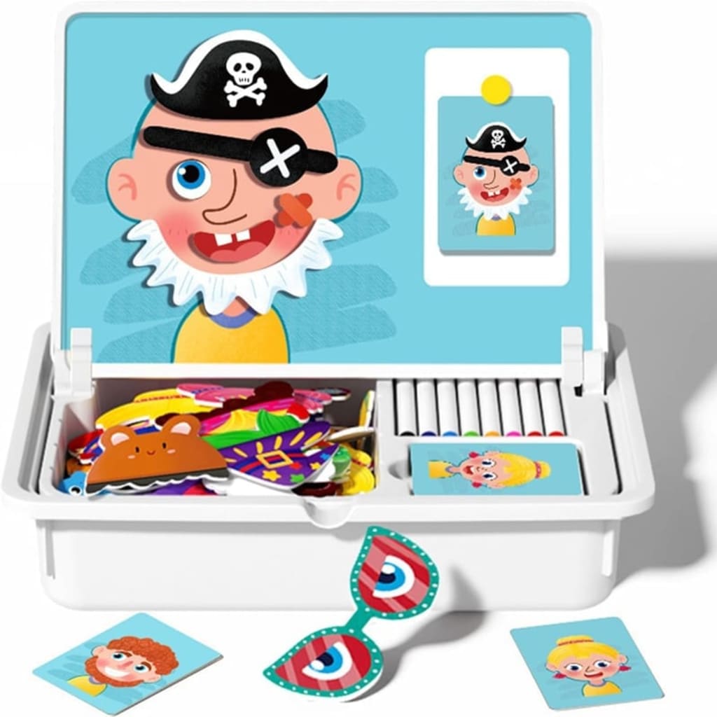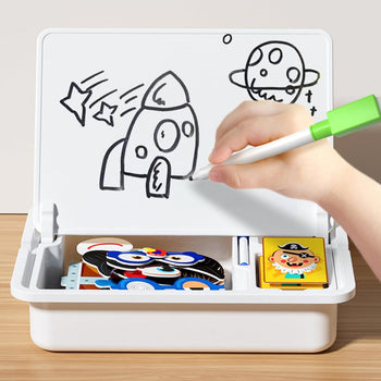 Use the flat storage box included to neatly organize all puzzle shapes and drawing accessories.